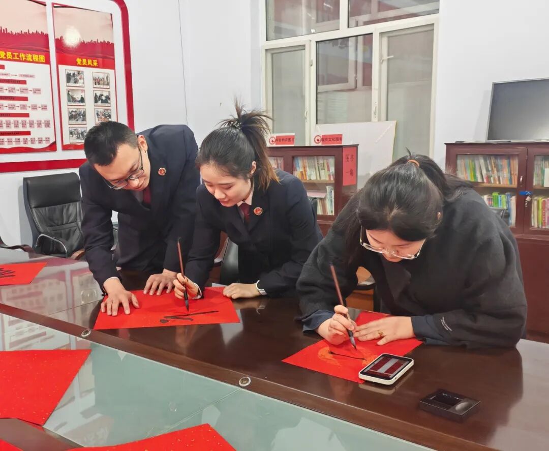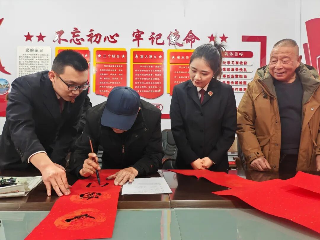 “四海同欢旧岁除,九州共庆新春来”、“世纪门前蛇起舞,梧桐树上凤呈祥”、“富贵平安财生财,全家和睦福增福”...活动现场气氛热烈融洽,该院检察人员与爱好书法群众挥毫泼墨、奋笔疾书,将新春的祝福融于笔墨间,把对人民安康的美好祝福留在纸上。