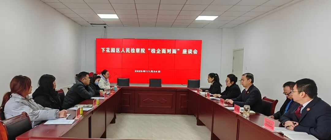 为进一步畅通检企联络渠道,不断提升企业法治意识,持续优化法治化营商环境,近日,下花园区人民检察院深入下花园区经济开发区,组织召开“检企面对面”座谈会,调研企业法治需求,征求企业对检察工作的意见建议。院党组书记、检察长班智慧及相关业务部门负责人、经济开发区负责人、企业代表参会。